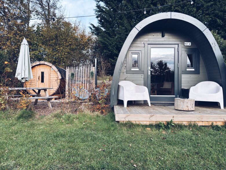 Onze nieuwe accommodaties met een heerlijk Emma Matras, eigen sanitair, leuke zithoek en een houtgestookte hottub!